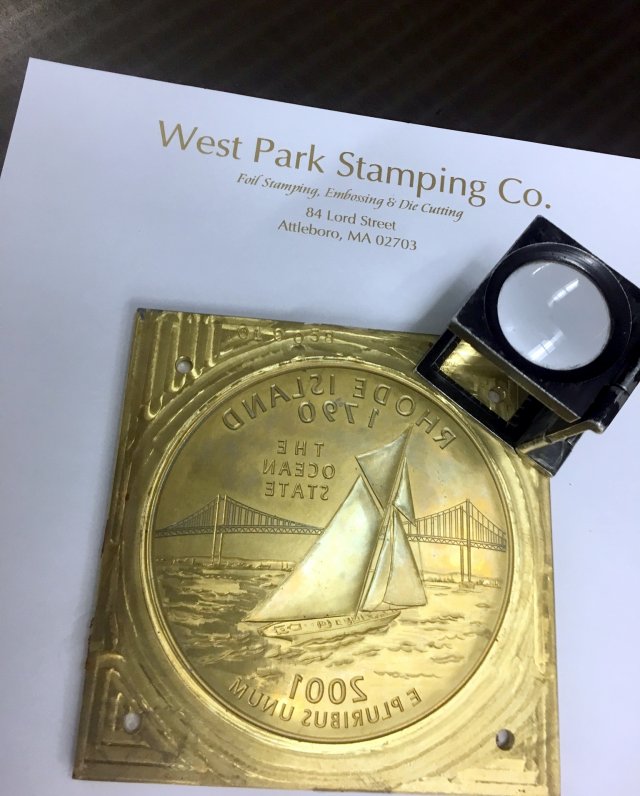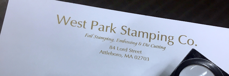 West Park Stamping is a hot foil stamping company located just off Route 95 in Attleboro, Massachusetts. In addition to foil stamping, we specialize in blind embossing, combination foil/embossing, debossing, kiss cutting, perforating, scoring, slitting and die cutting. All of these processes can showcase a customer's corporate identity and brand recognition.